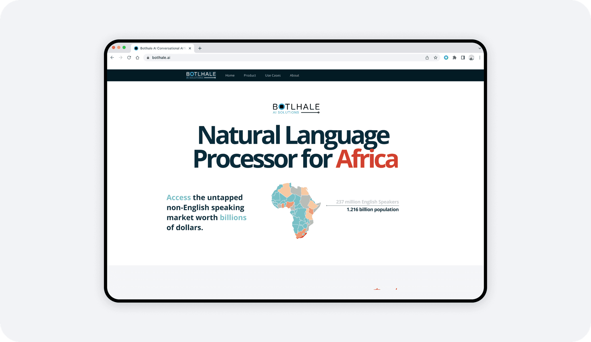 Bridging the digital divide through language. An NLP interface designed to give a voice to African languages in the digital space.