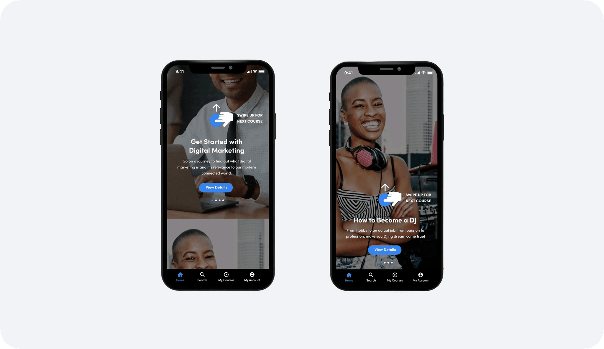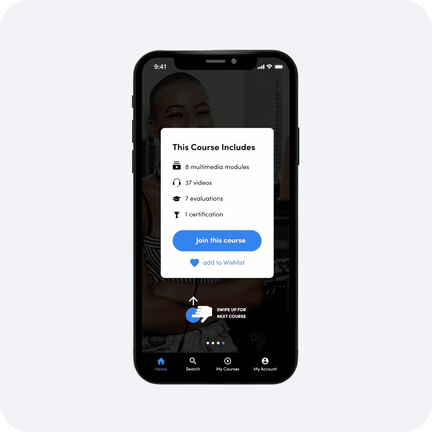 Trace Academia needed an educational app that would resonate with a young, mobile-first audience. I developed a high-fidelity conceptual prototype focusing specifically on the course discovery journey. Moving away from traditional static lists, I implemented an interface driven by intuitive swiping gestures and immersive content cards. This design mimics the engagement patterns of social media, allowing users to fluidly explore vocational courses through rich visuals and dynamic interactions. The result was a "mobile-first" concept that made the path to employment feel as engaging as browsing a favorite app.